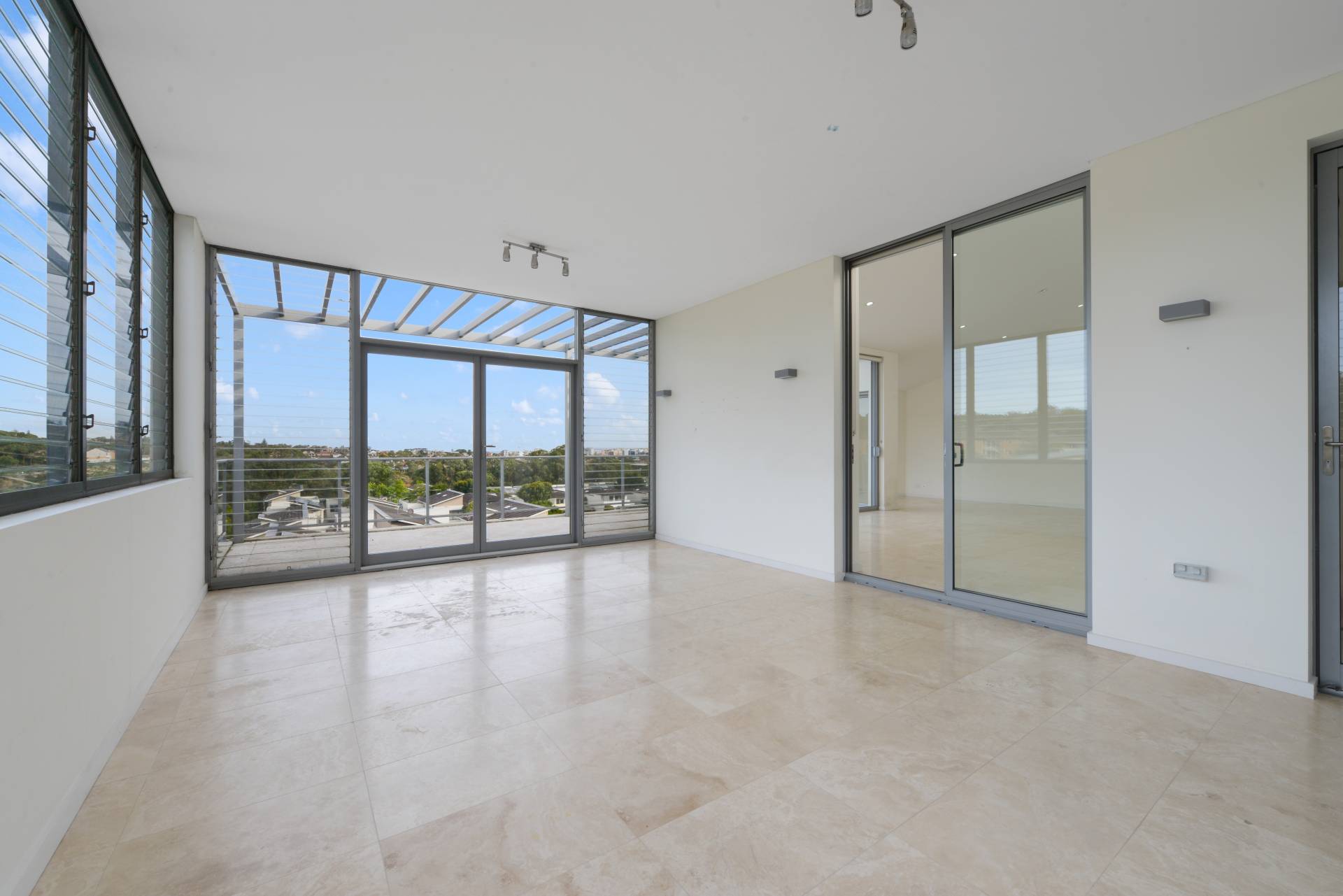 Featuring designer finishes with Travertine floors, 3 bedrooms all with built ins, main with ensuite, internal laundry, 2 security car spaces, large sunroom/play area and a large balcony with district views.