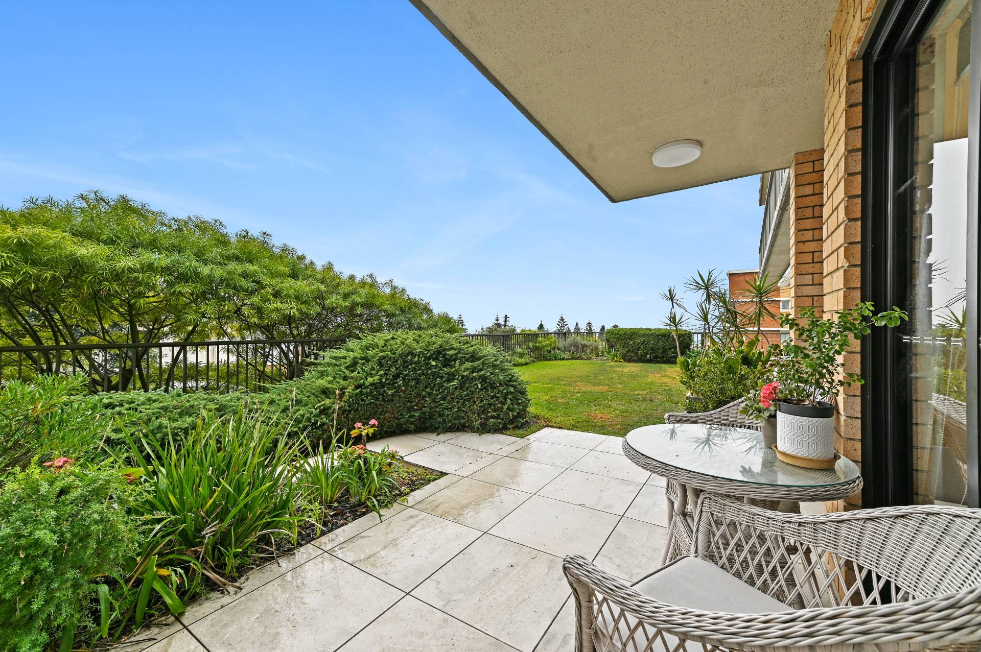> Open-plan living and dining extends outdoors, views over Coogee Beach