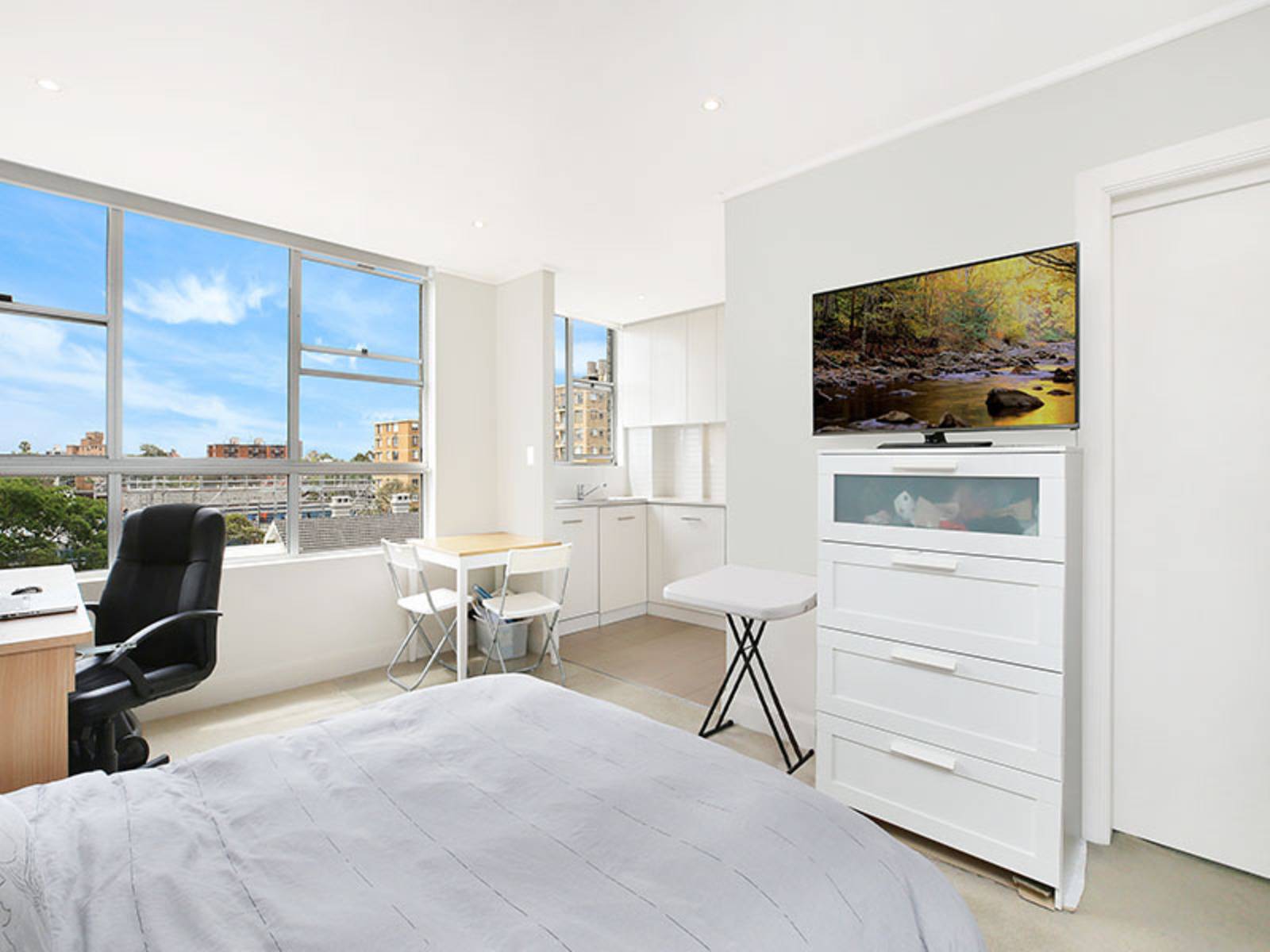 Located on the top floor in a security building with lift access, this lovely and bright north facing studio apartment has district and city views.