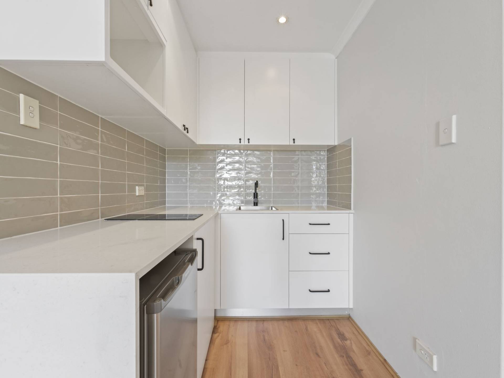 - Renovated kitchen with stainless steel oven and ceramic cooktop