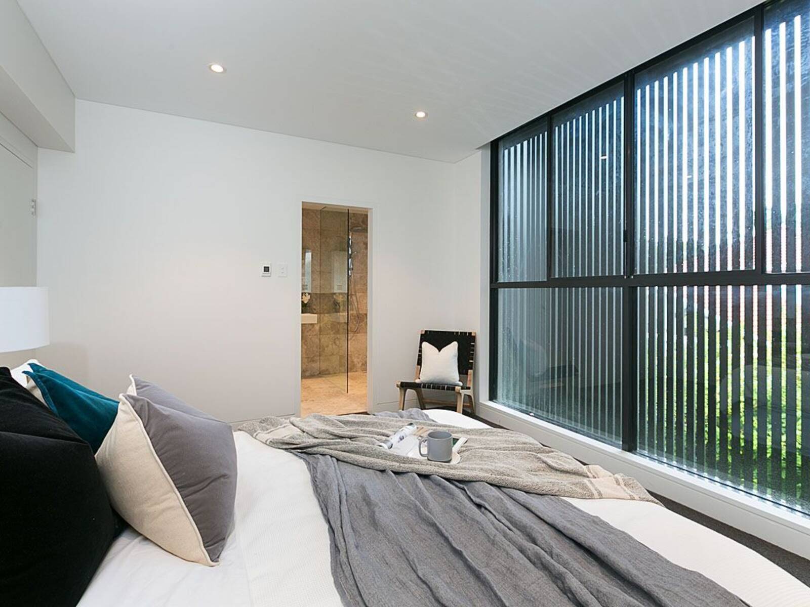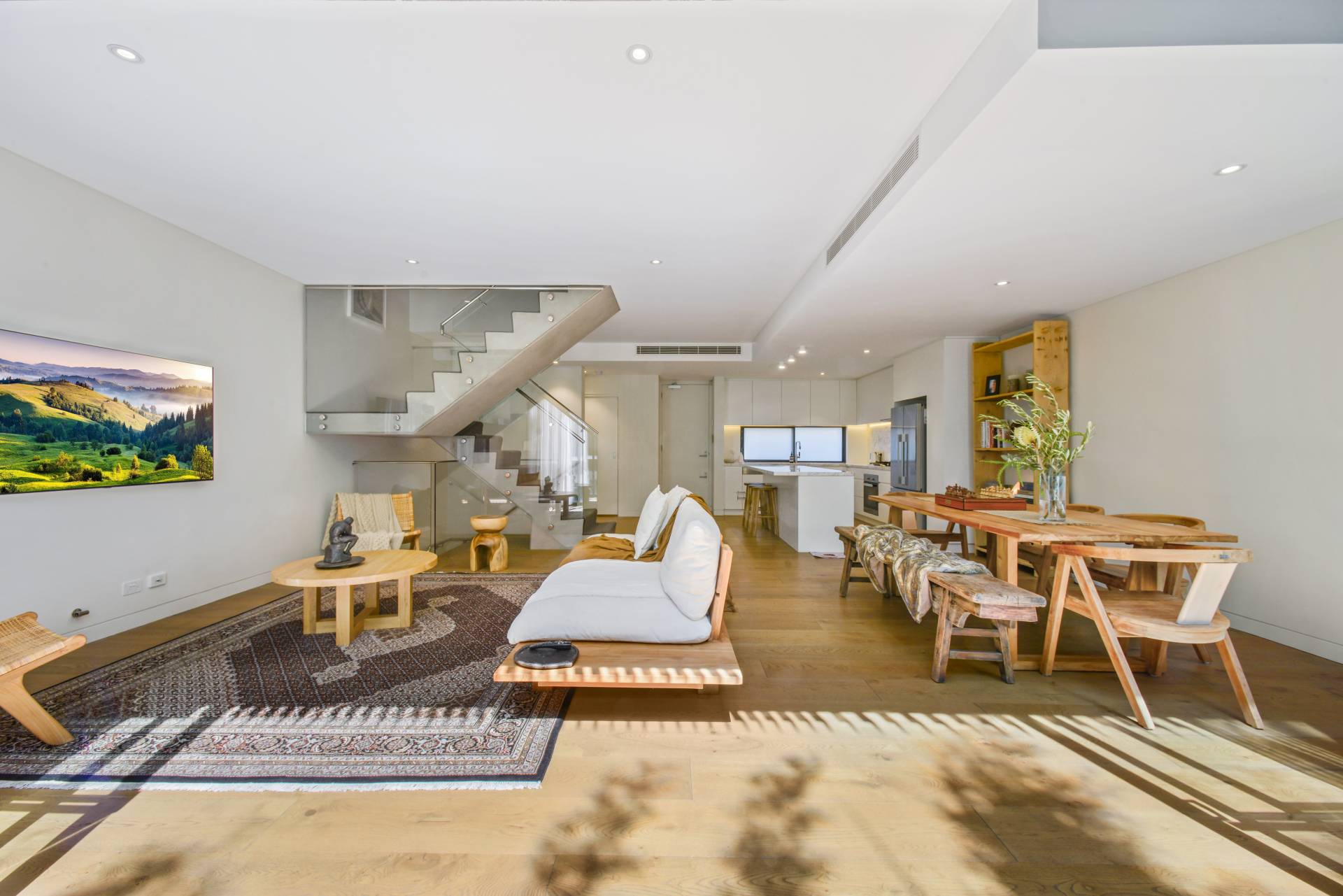 - Wide timber floors, full height glass walls, video intercom