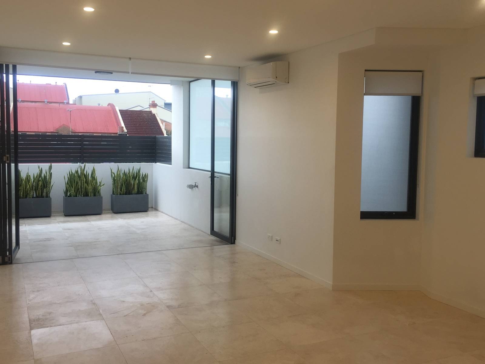 This apartment boasts travertine floors, air conditioning, chic designer kitchen with stone bench-top and Smeg appliances that flow onto an open plan living area creating a sense of space.